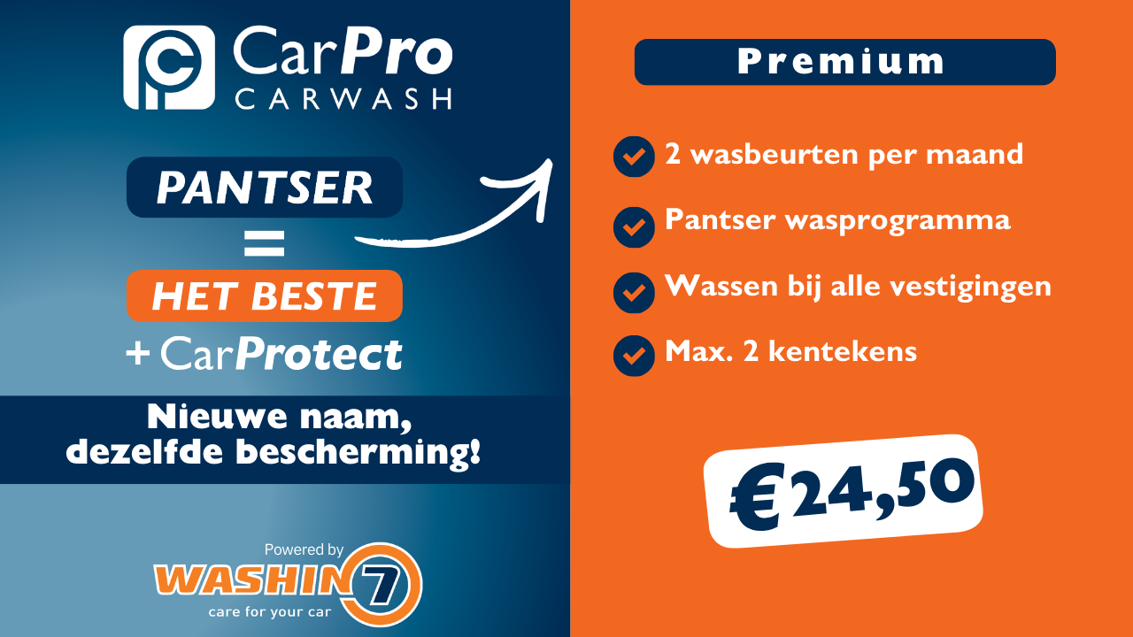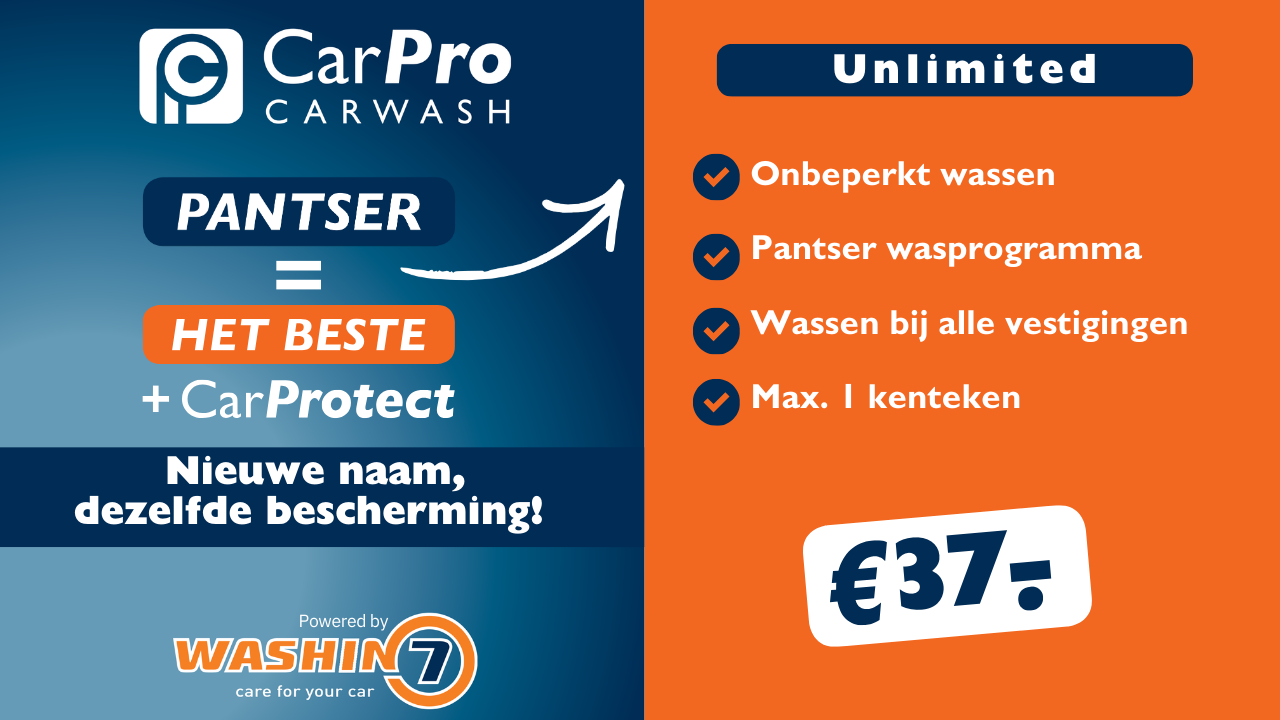 Met het CarPro Unlimited abonnement, was je je auto onbeperkt voor slechts €37,- per maand. Bij elke wasbeurt ontvang je het programma Pantser.